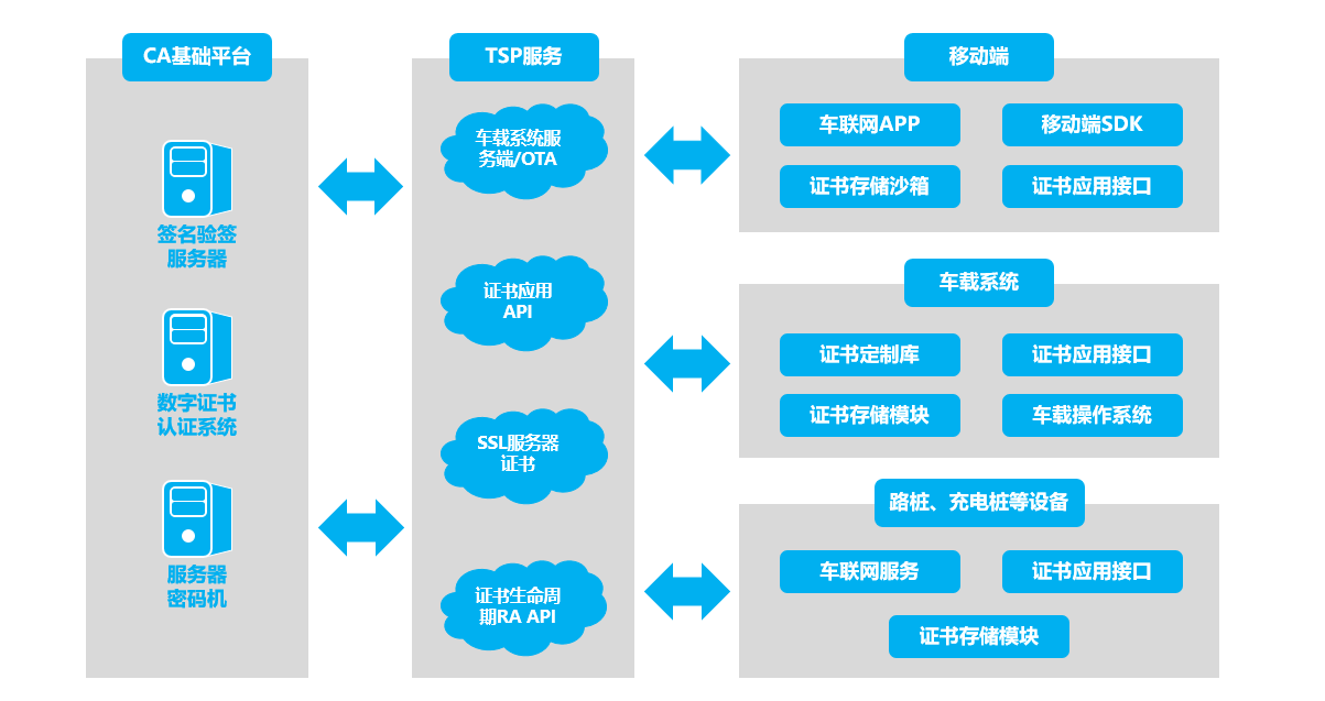 随着5G、边缘计算等新技术与智能网联汽车融合应用更加深入,我国车联网产业在多方面取得了积极进展,通过汽车、交通等传统产业转型升级,在促进形成数字经济发展的新产业集聚方面起到了积极作用。同时,汽车智能化、联网化程度也越来越高,汽车成为了万物互联时代的智能终端设备,在产业快速发展的同时,车联网安全风险日益凸显,车联网安全保障体系亟须健全完善。湖北CA提供的车联网安全认证解决方案,结合车联网的安全特点,以国密算法为基础,实现车联网多应用场景下的身份认证、重要数据的机密性和完整性保护,从整体上提高网络安全防护能力。