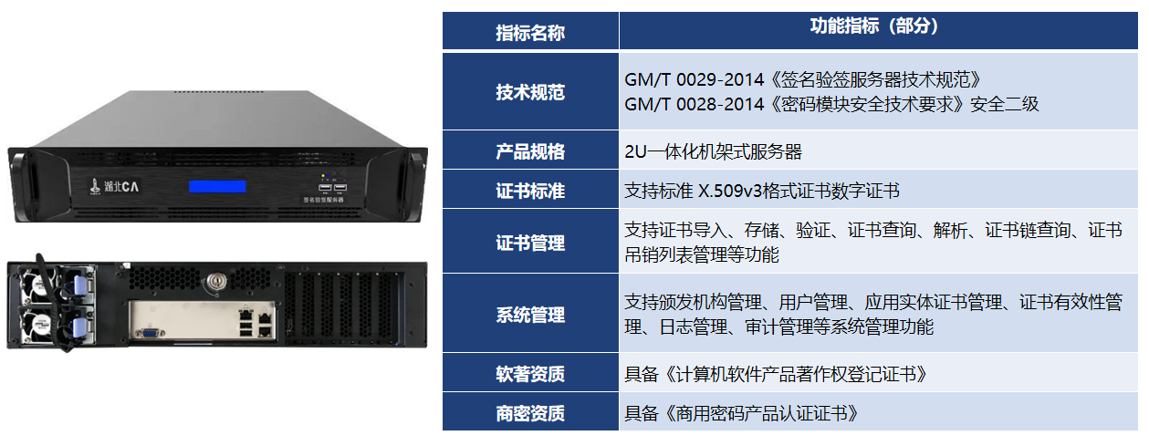 遵循《GM/T0029-2014签名验签服务器技术规范》,达到《GM/T0028-2014密码模块安全技术要求》安全二级。